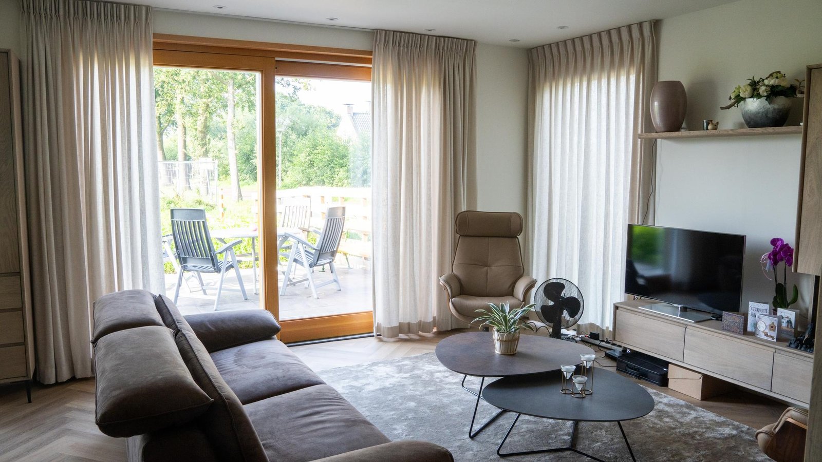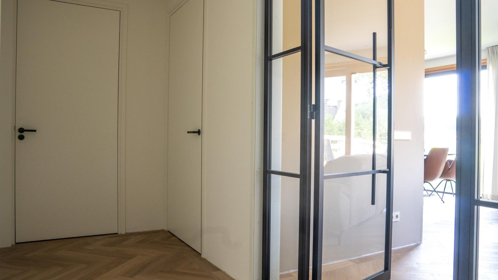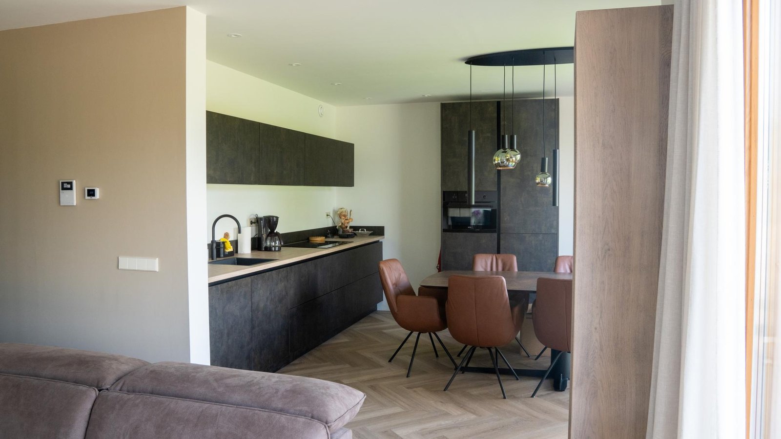 Steekwoorden die het appartement goed beschrijven zijn; zeer veel lichtinval door het gebruik van grote raampartijen en schuifpuien. Gebruik van duurzame materialen met aan de buitenzijde steenstrippen afgewisseld met houten verticale delen.