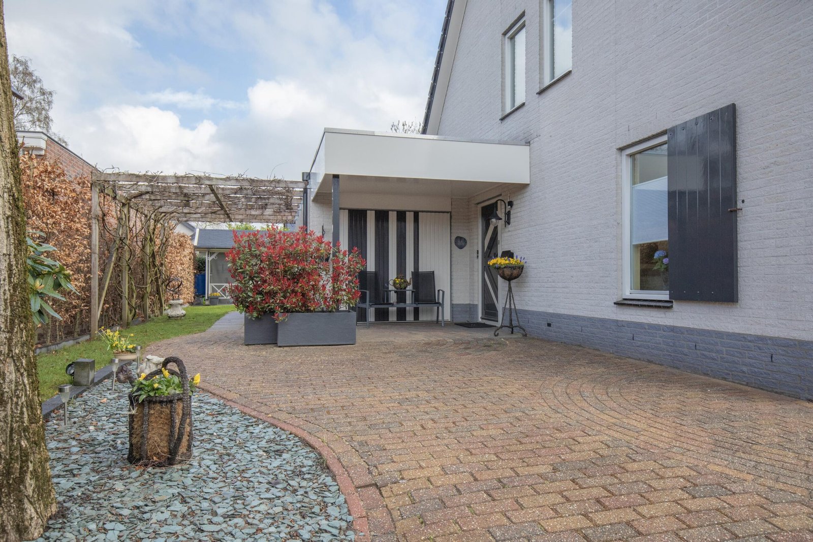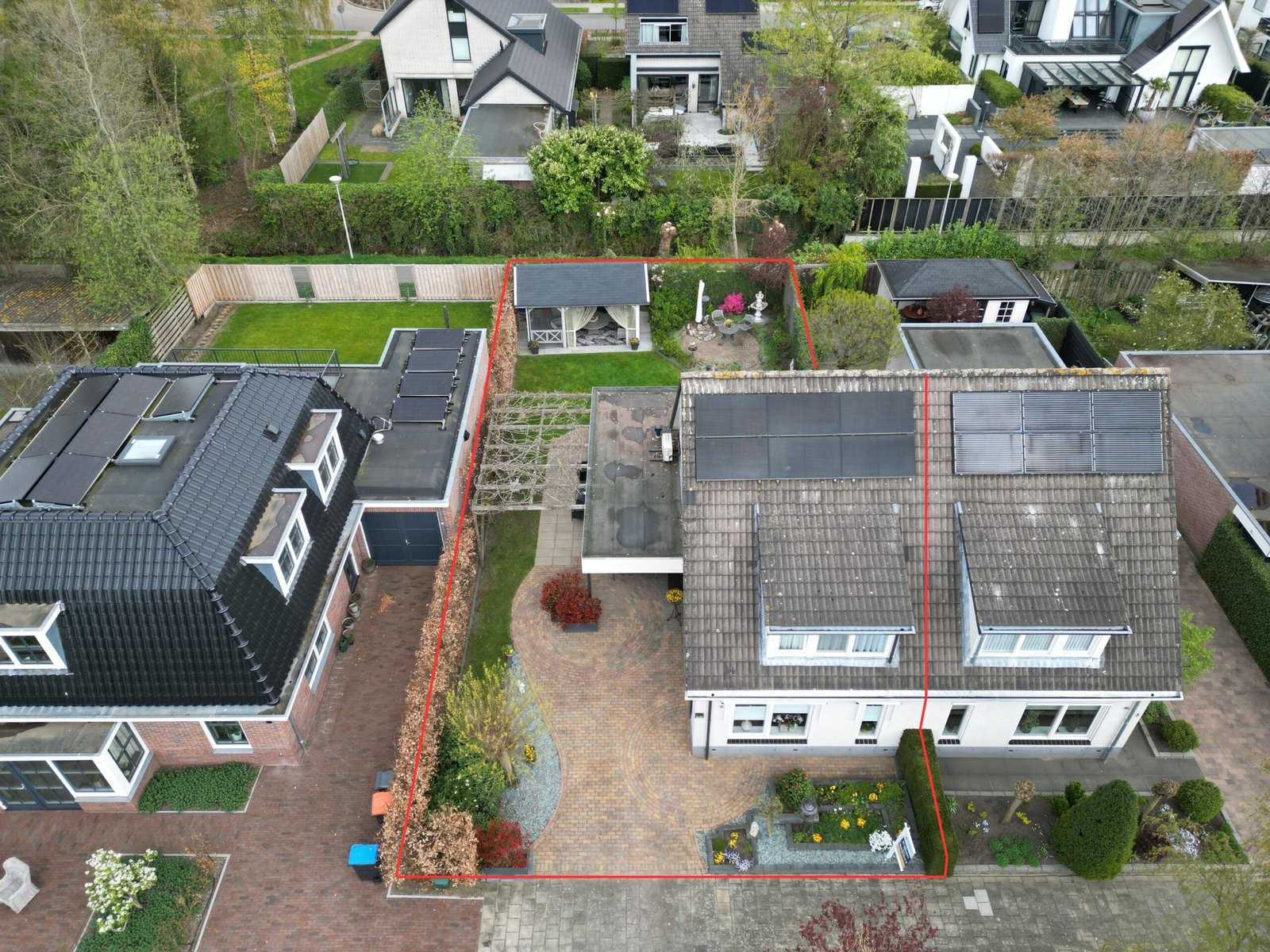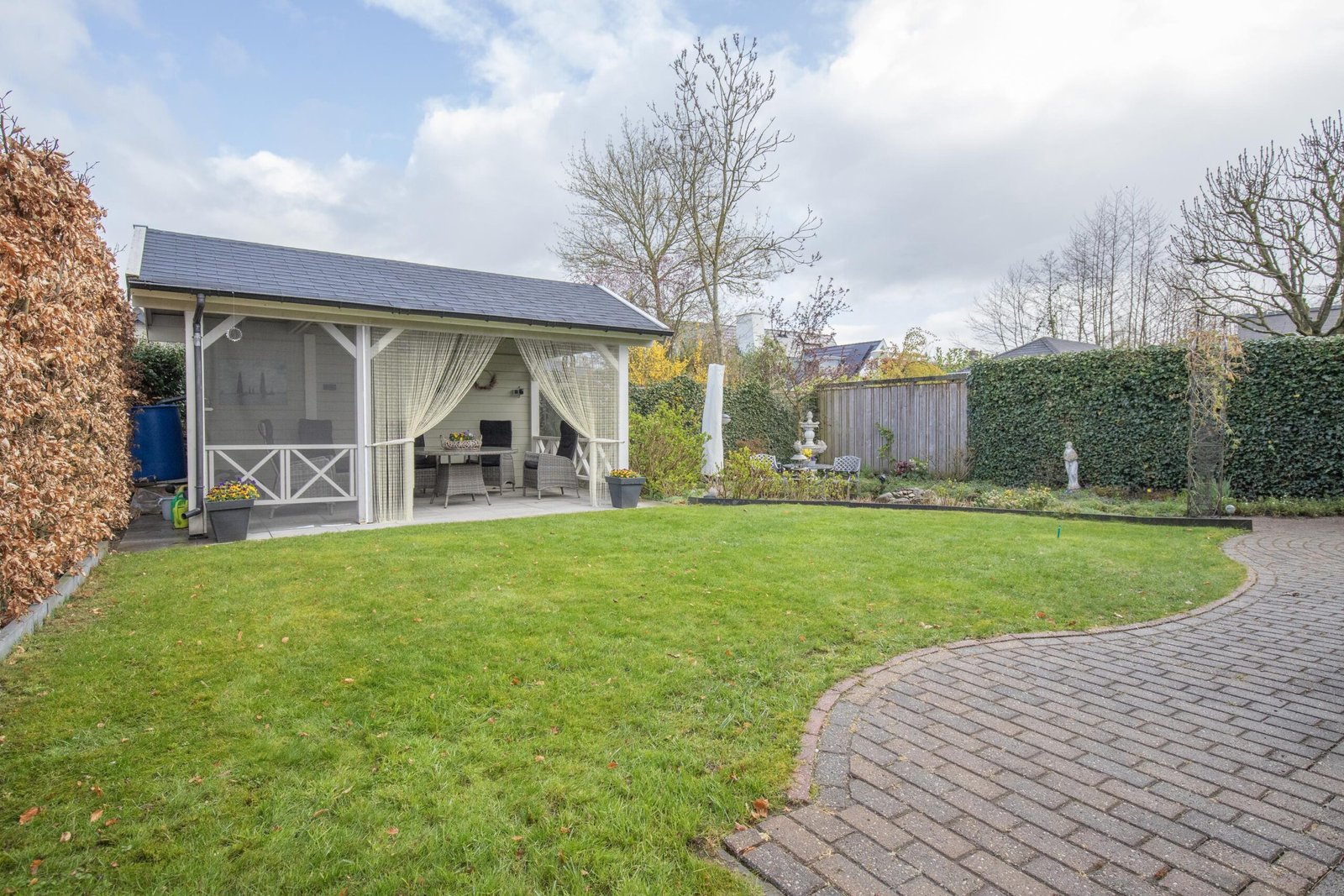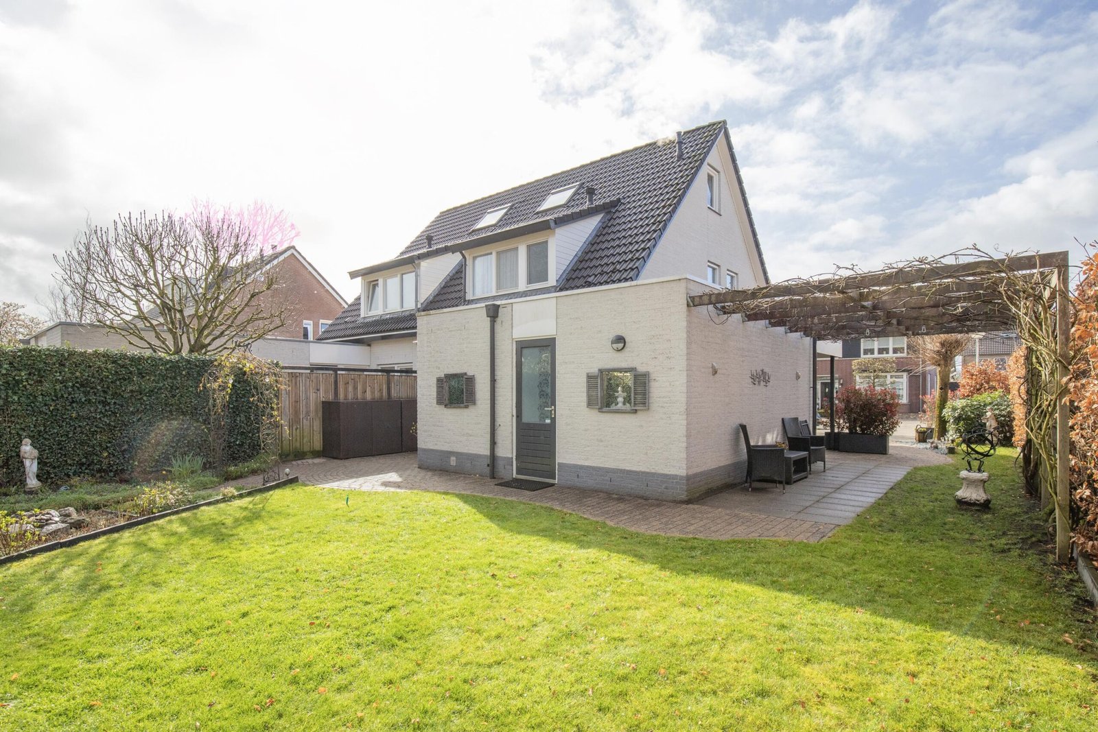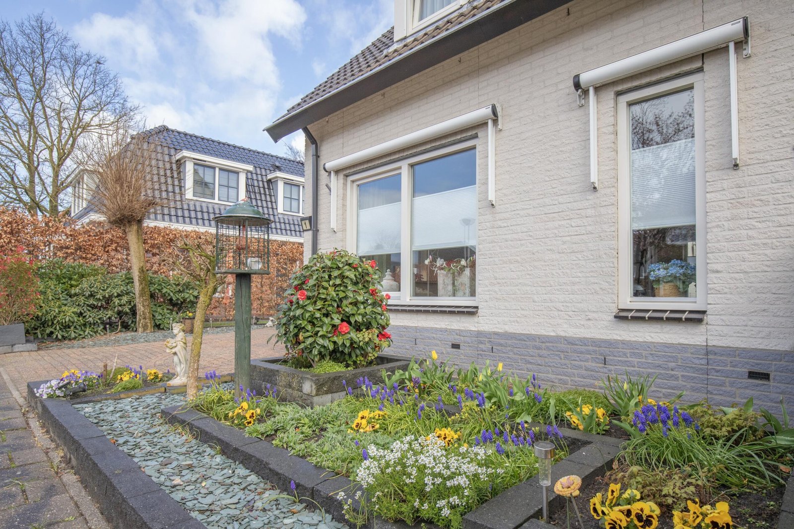 Zodra je de achtertuin instapt, voel je het: dit is genieten. Met meerdere terrassen, een kleurrijke mix van beplanting en een romantische pergola omhuld door een prachtige blauwe regen, is dit een plek waar elk seizoen tot leven komt. Het sfeervolle tuinhuis – compleet met elektra en verwarming – maakt het plaatje af. Hier zit je het hele jaar door goed. De voortuin is fraai en afwisselend ingericht met bordes in verschillende hoogtes en afgezet met design-stenen. De woning is rondom voorzien van verlichting.