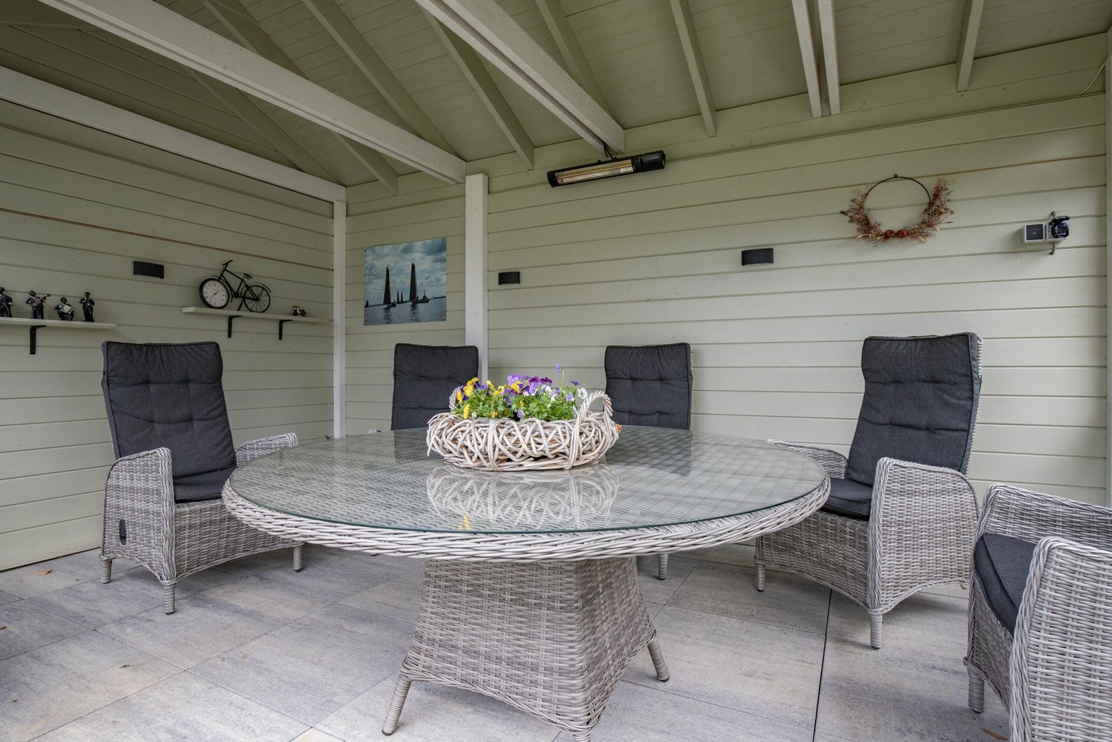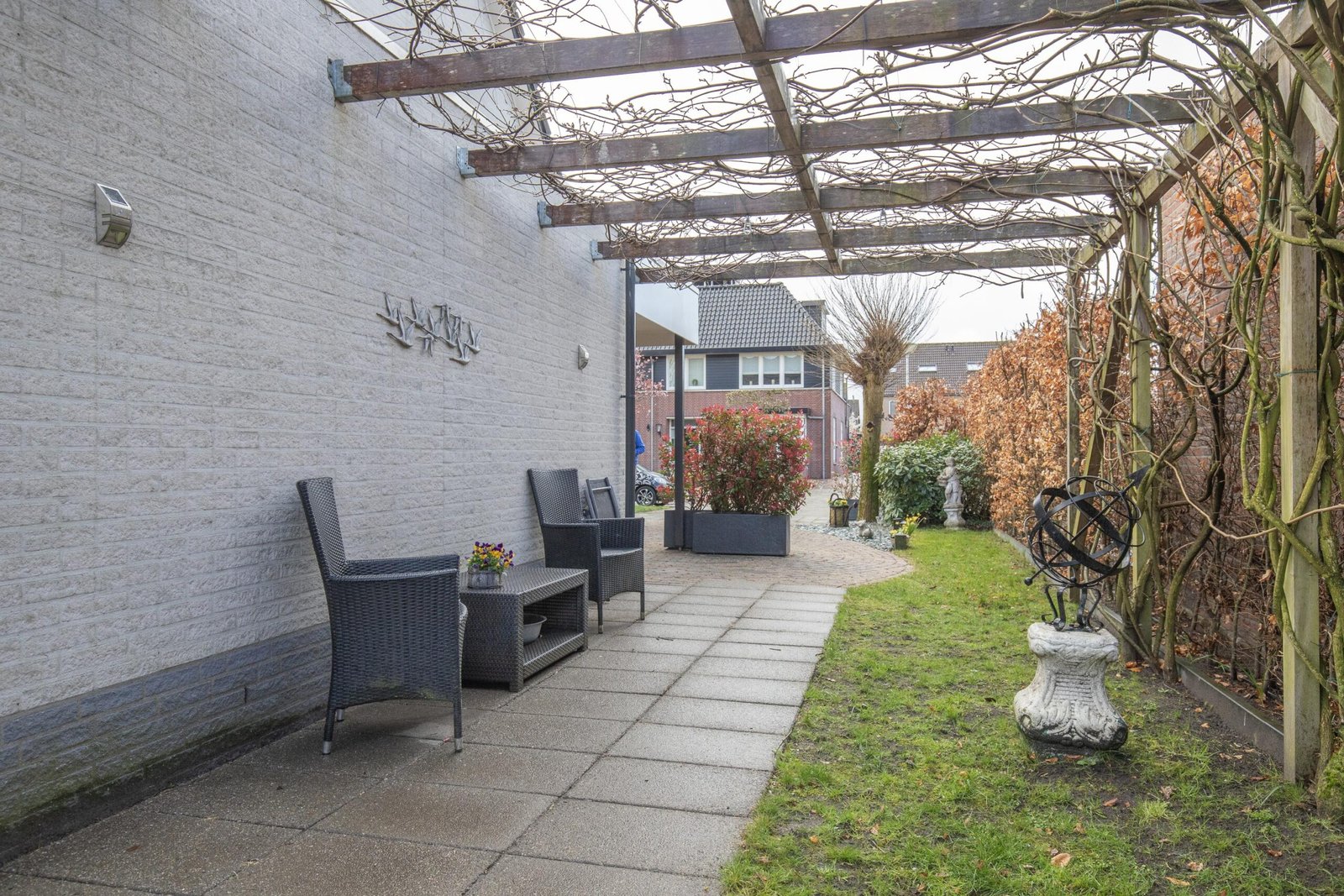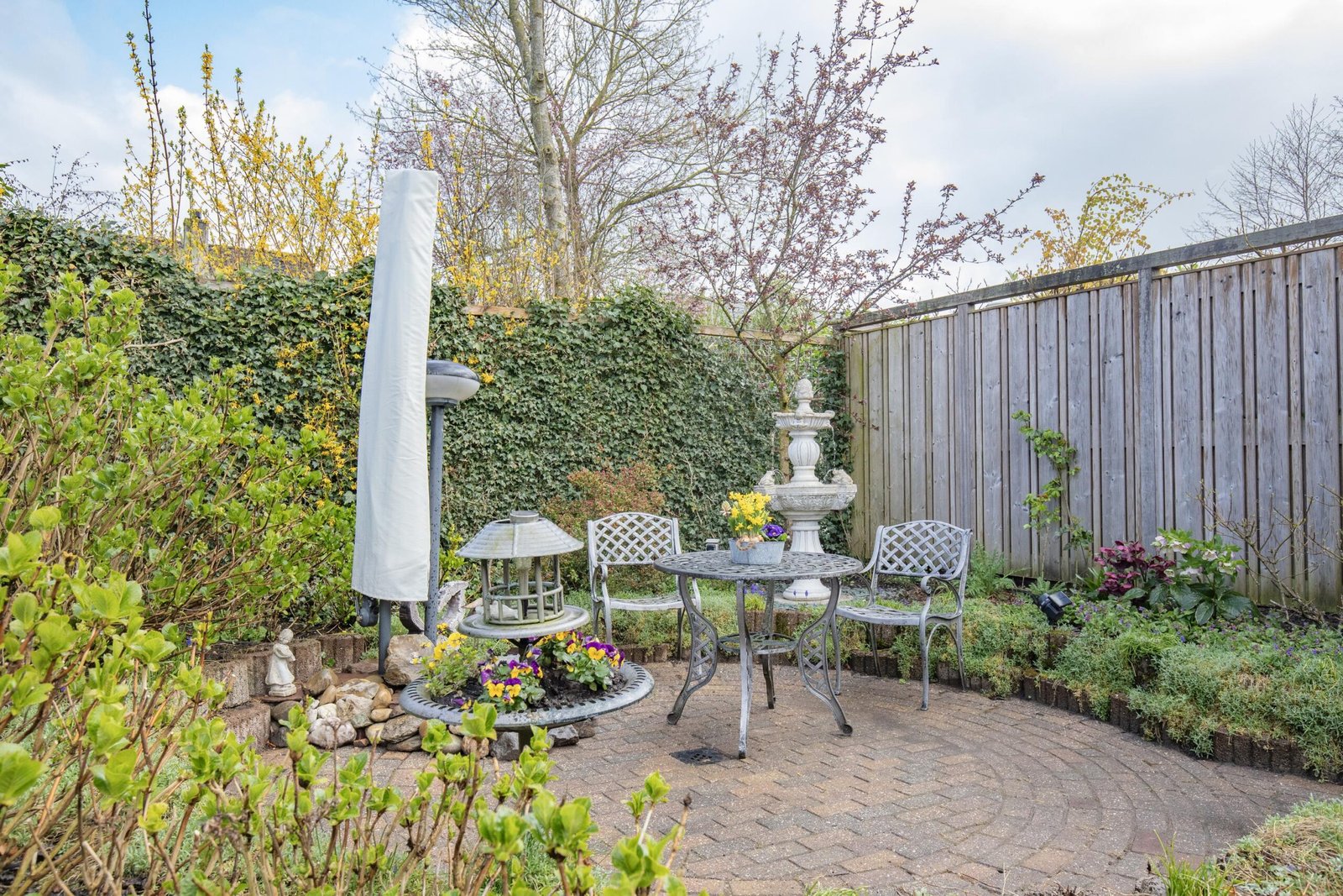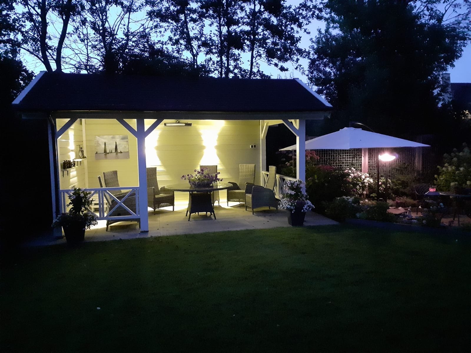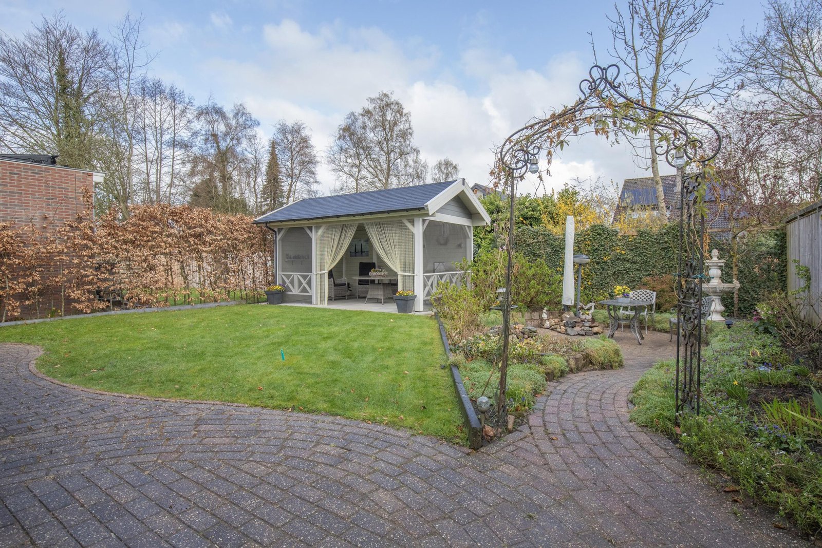 Zodra je de achtertuin instapt, voel je het: dit is genieten. Met meerdere terrassen, een kleurrijke mix van beplanting en een romantische pergola omhuld door een prachtige blauwe regen, is dit een plek waar elk seizoen tot leven komt. Het sfeervolle tuinhuis – compleet met elektra en verwarming – maakt het plaatje af. Hier zit je het hele jaar door goed. De voortuin is fraai en afwisselend ingericht met bordes in verschillende hoogtes en afgezet met design-stenen. De woning is rondom voorzien van verlichting.