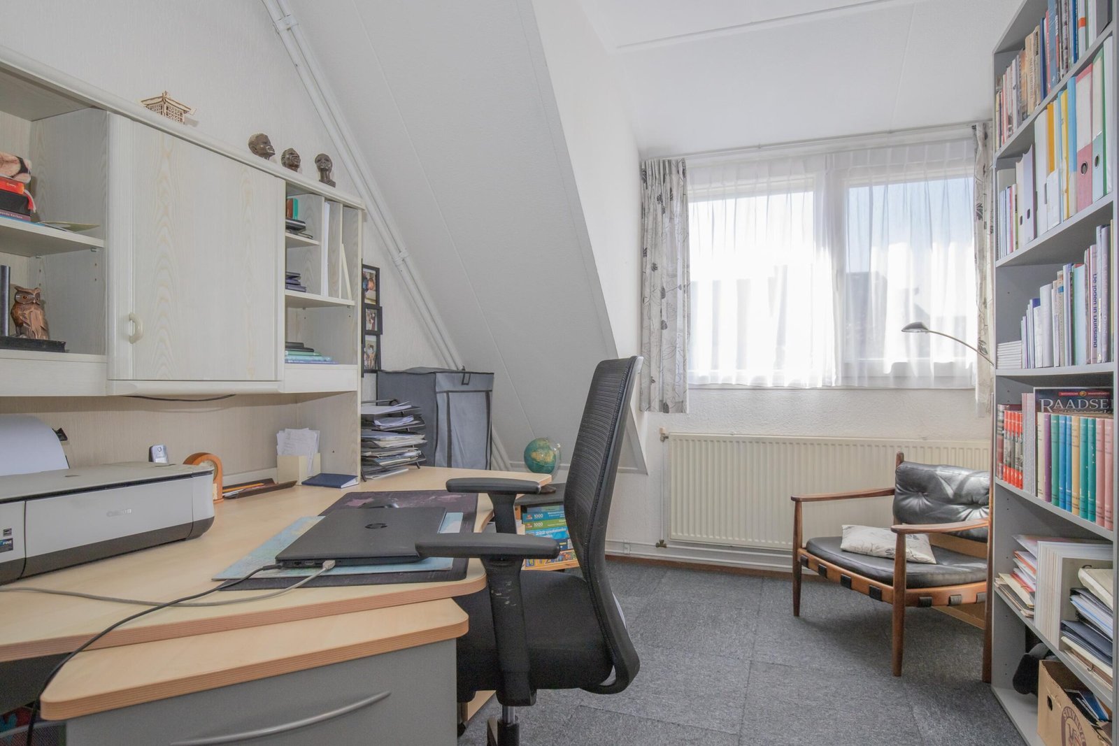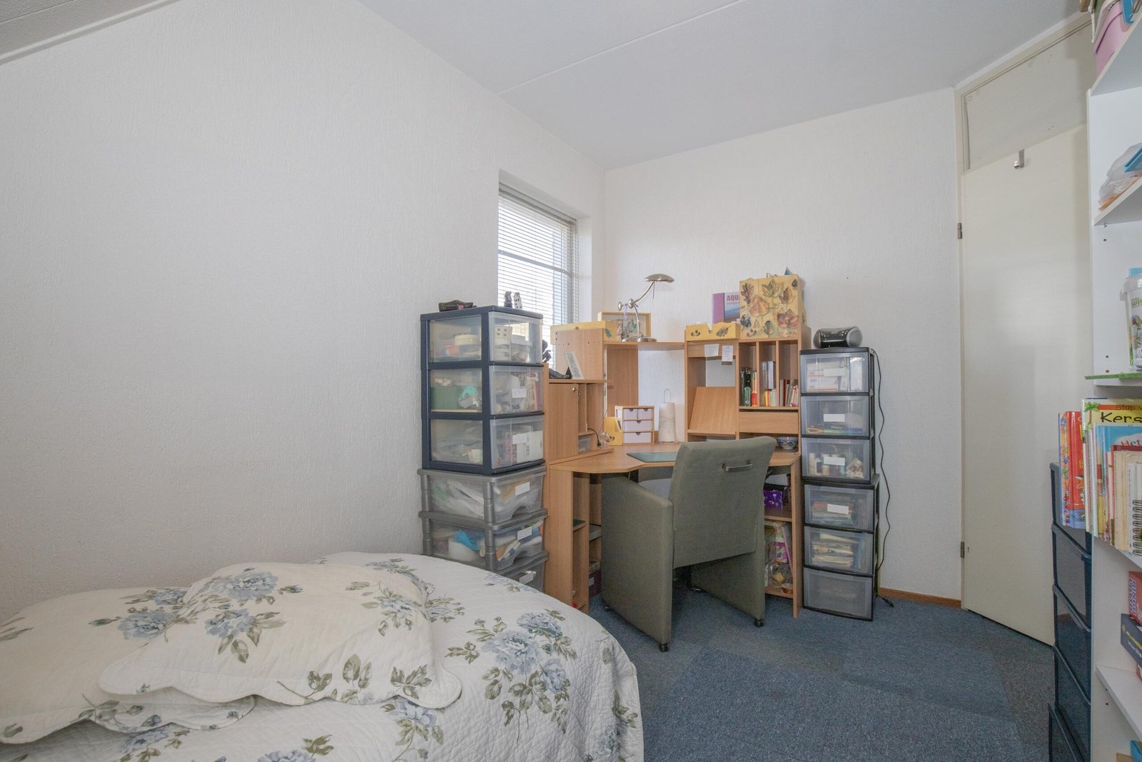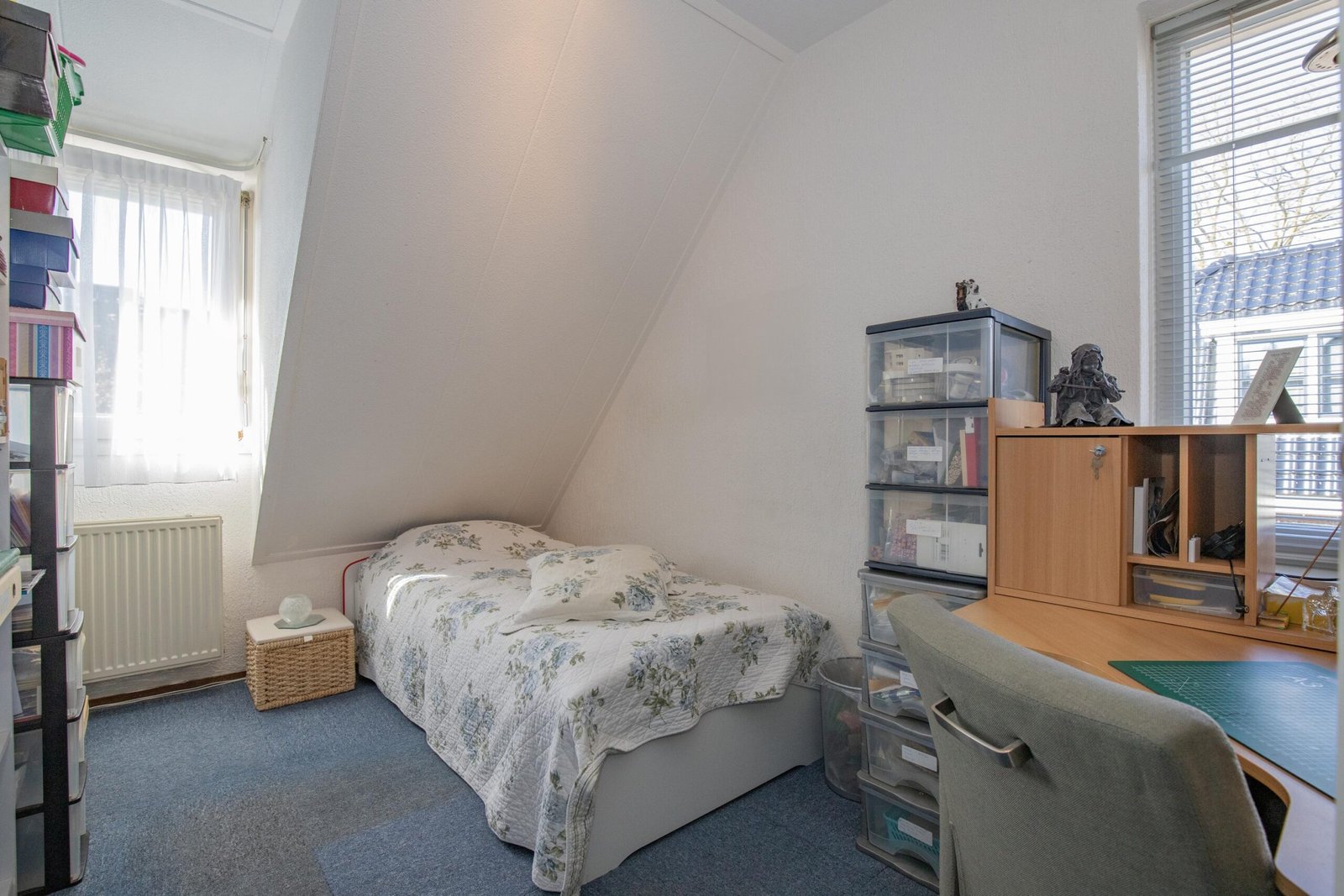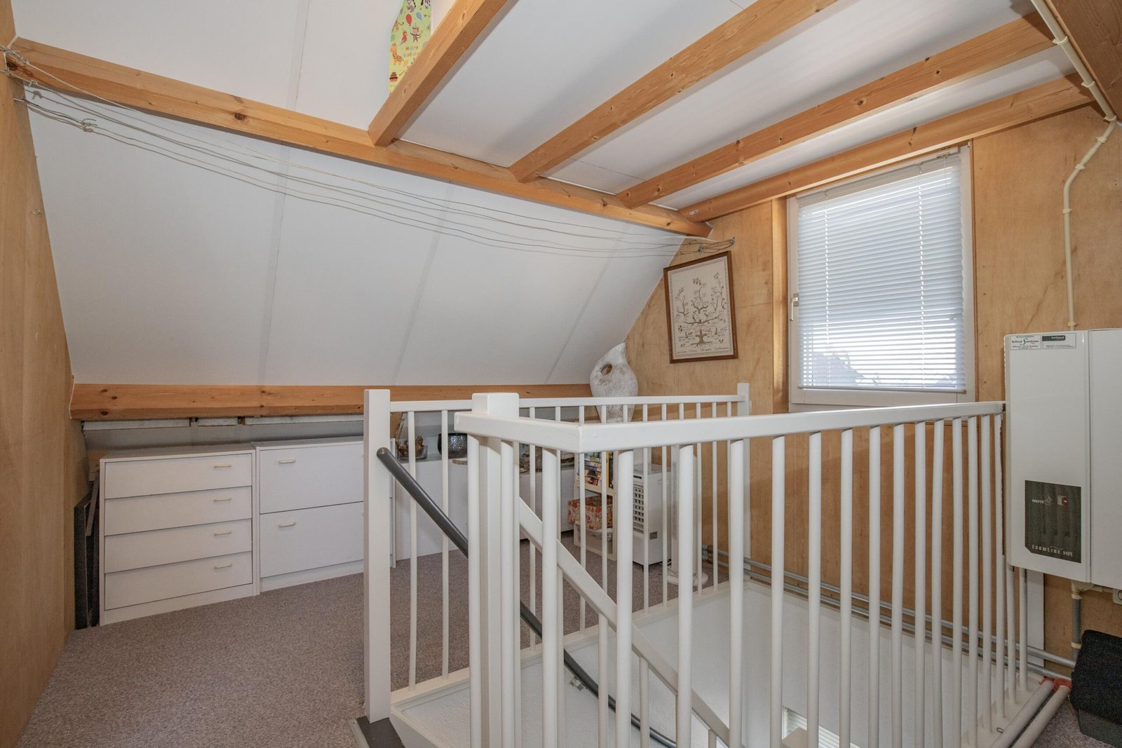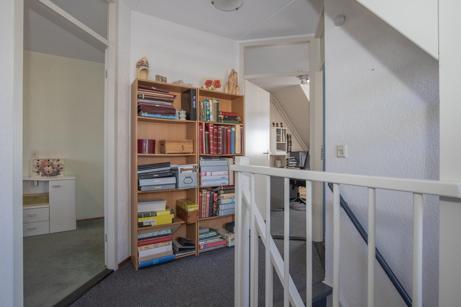 De tweede verdieping verrast met een extra slaapkamer en een praktische overloop met cv-opstelling – ideaal als werkplek, hobbyruimte of logeerkamer. Verschillende ramen op de eerste en tweede verdieping zijn voorzien van horren en screens.
