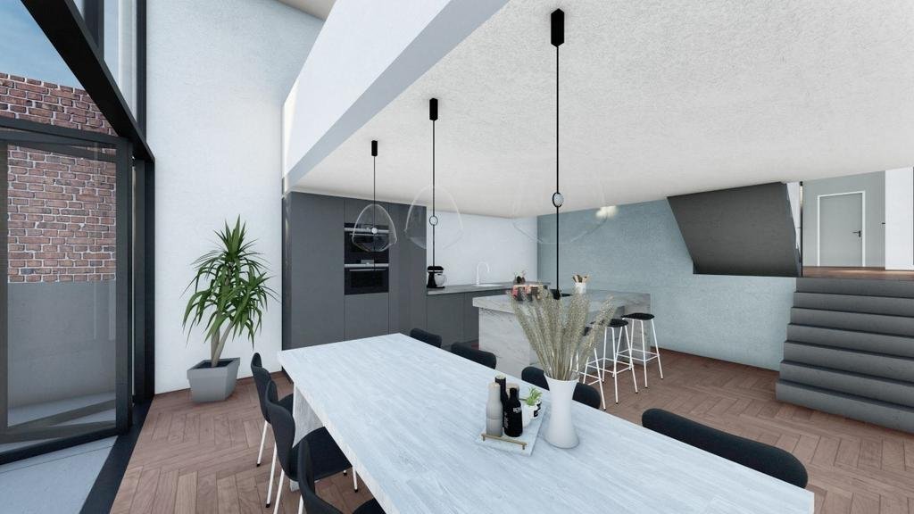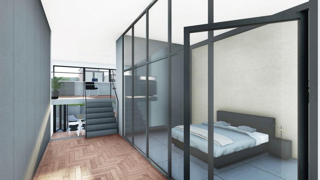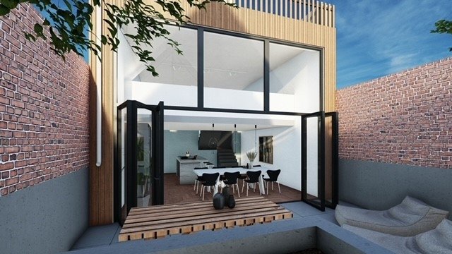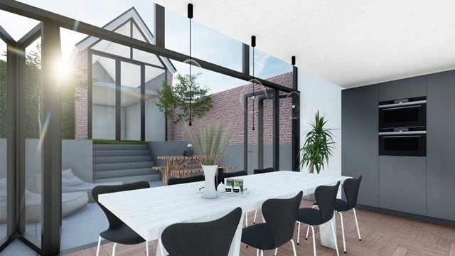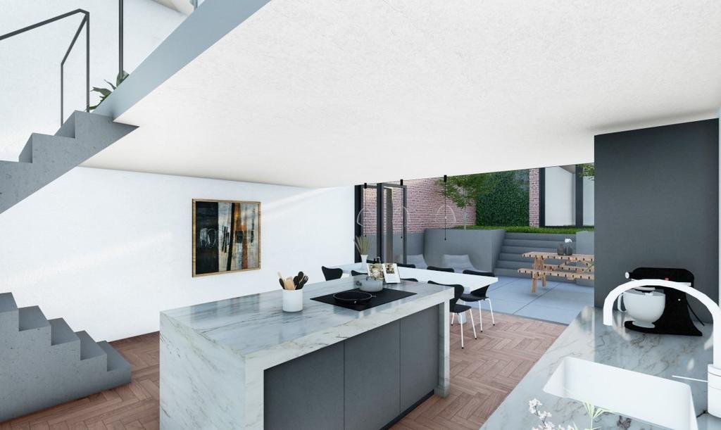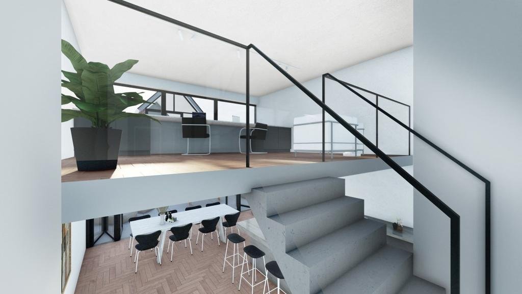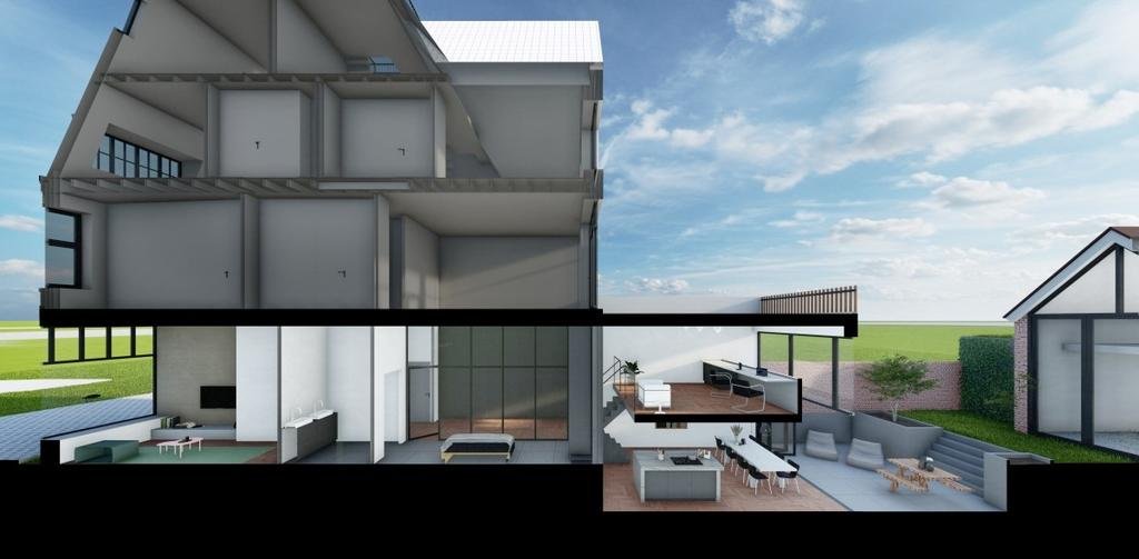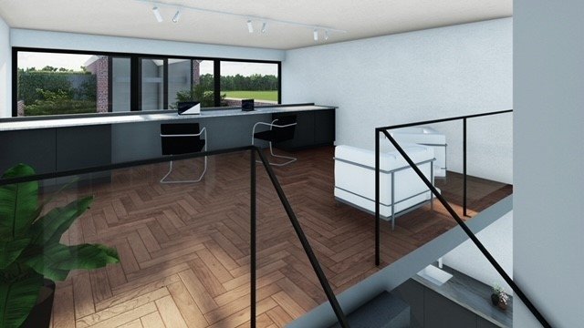 • Aan de tuinzijde wordt een splitlevel met glazen pui gerealiseerd