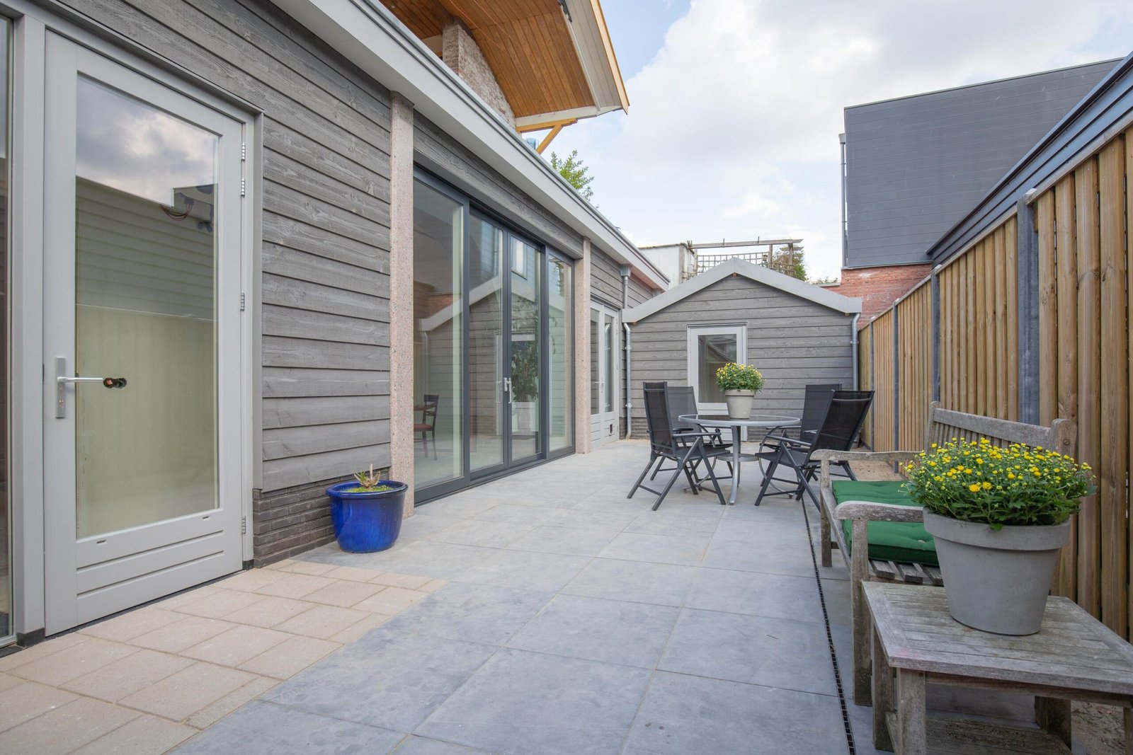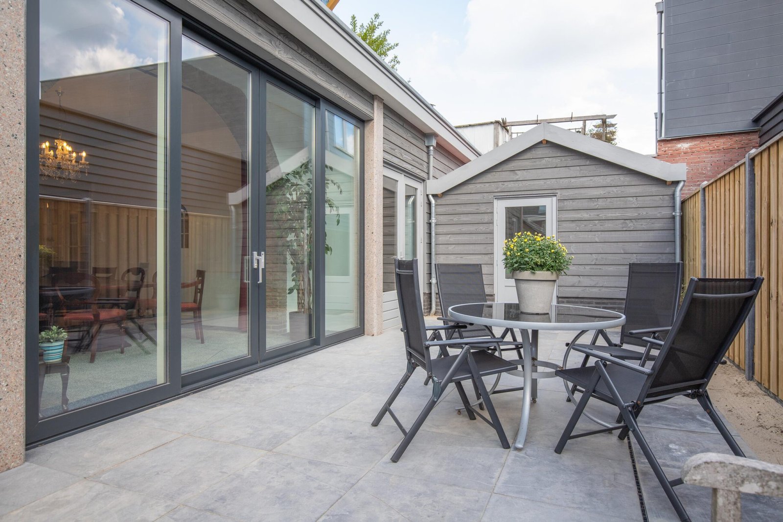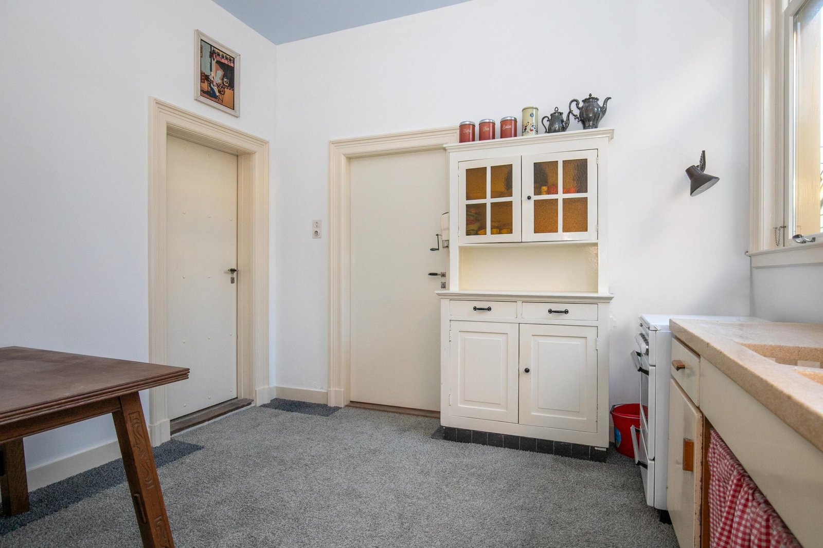 Uniek is de multifunctionele ruimte van maar liefst 33 m² – ideaal als eetkamer, atelier, werkkamer of hobbyruimte. Dankzij de grote glazen schuifpui staat deze ruimte in directe verbinding met het sfeervolle, besloten achterterras van ca. 40 m². De authentieke keuken met stenen werkblad en klassieke gootsteen is een knipoog naar het verleden, en wordt gecomplementeerd door een praktische bijkeuken.