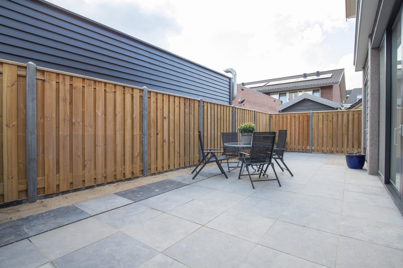 Geniet van de heerlijke, zonnige, onderhoudsarme achtertuin met geheel vernieuwde houten schutting en berging voor het opbergen van uw tuinstoelen en fietsen