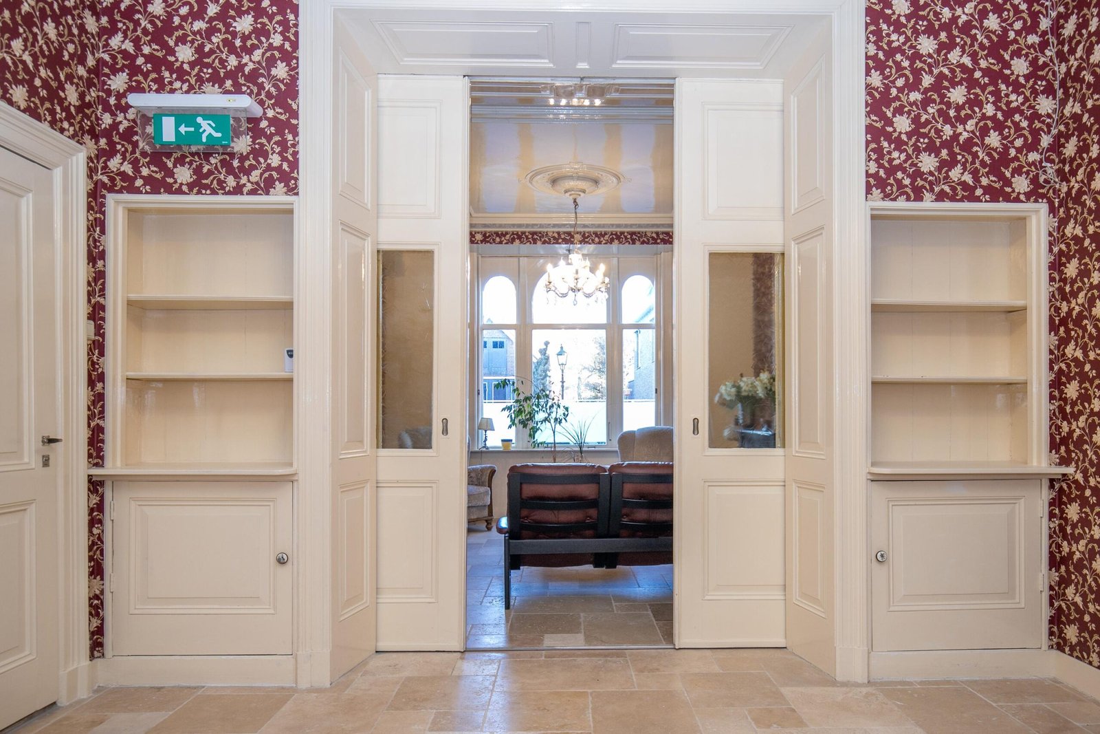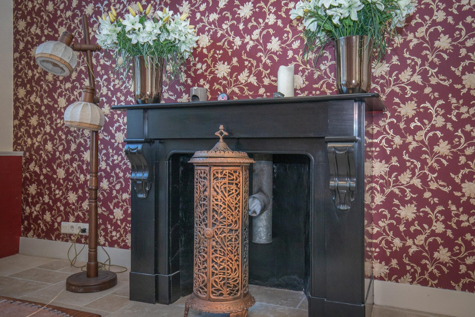 U betreedt de woning via een stijlvol tochtportaal, waarna de imposante hal toegang biedt tot diverse vertrekken. De statige kamer-en-suite met vaste kasten, een sfeervolle schouw en een prachtige plavuizen vloer vormt het hart van de woning. Er zijn twee royale slaapkamers (12 m² en 20 m²), met toegang tot een nog te realiseren, ruime badkamer van ca. 9 m² (de voorzieningen zijn reeds aangelegd).